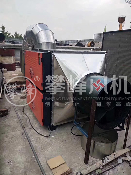 PVC手套在高溫生產烘制過程中,有10-15%的混合料溶劑揮發形成烘烤煙氣〔由降粘劑,DOP、TXIB、DOA、環氧大豆油、鈣鋅穩(安)定劑組成〕,這些煙氣彌漫在車間內部會嚴重影響生產環境的清潔,直接排放到外界空氣中也會造成原材料浪費。